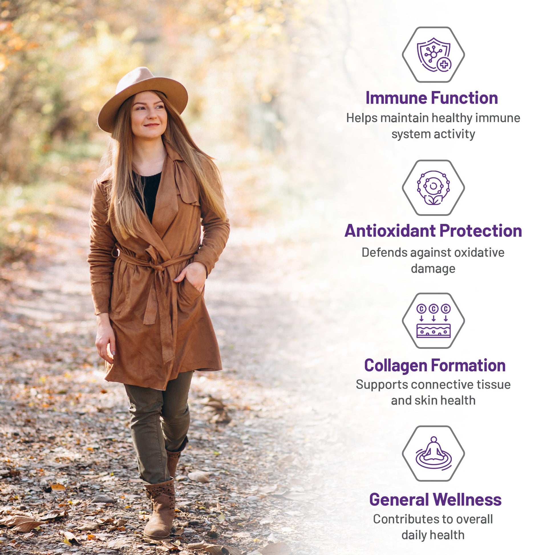 - Promotes Gum Wellness: This ascorbic acid supplement aids in maintaining healthy gums, supporting tissue regeneration and helping them stay strong and resilient through daily activities.