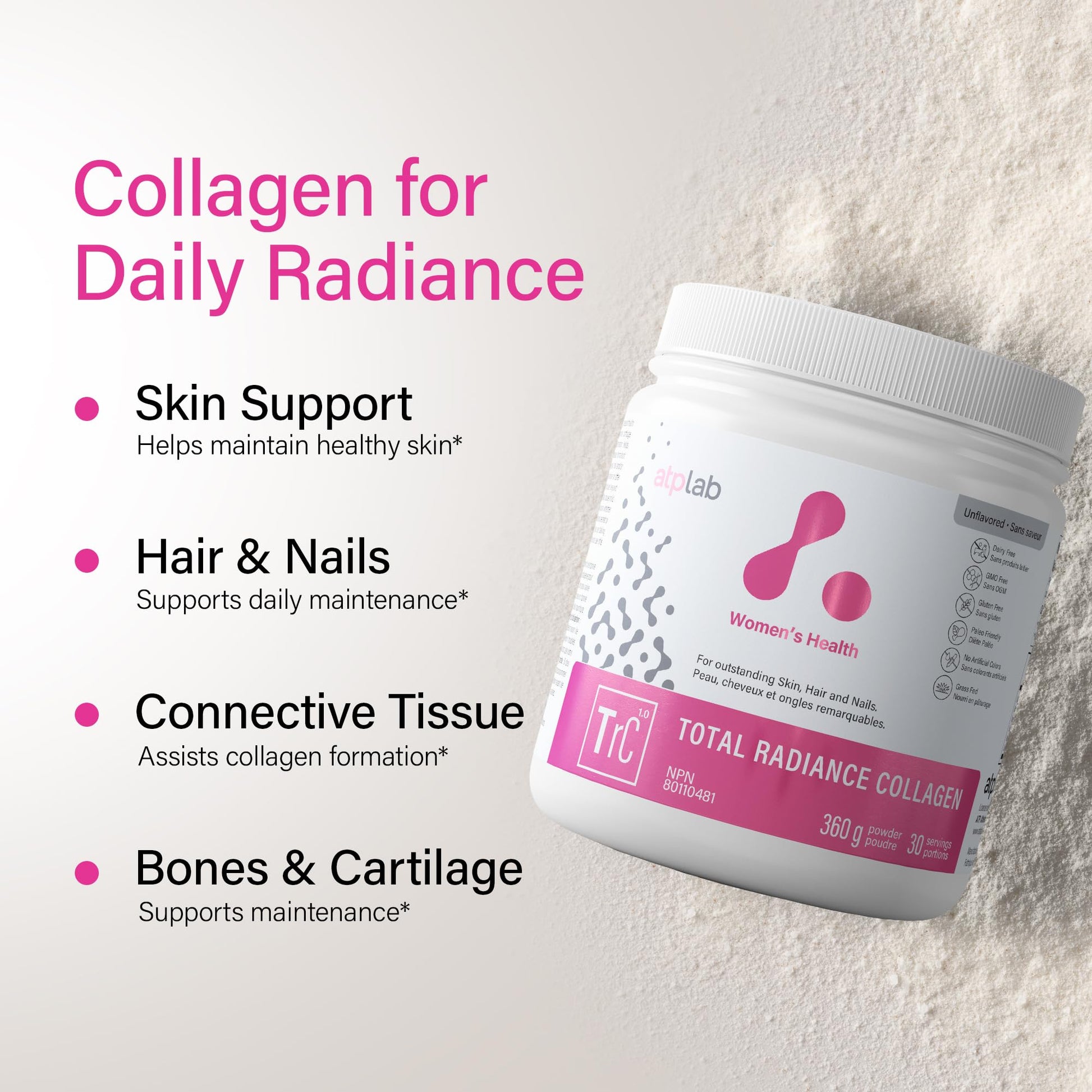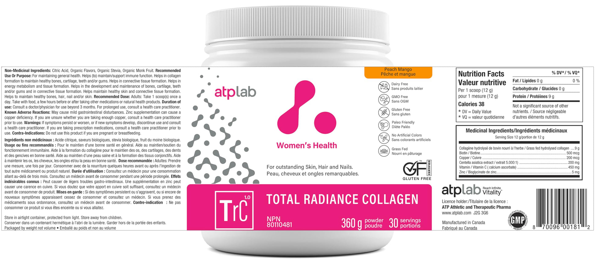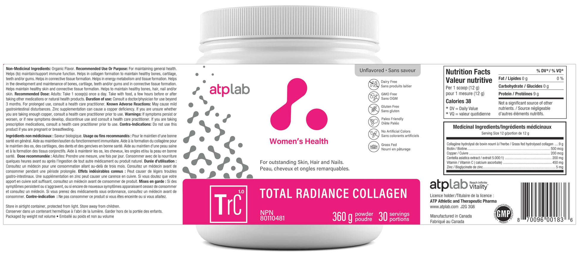 ATP LAB - Total Radiance Collagène 360g - Poudre de protéines de collagène pour femmes - Pour la peau, les cheveux et les ongles - Suppléments de collagène pour femmes