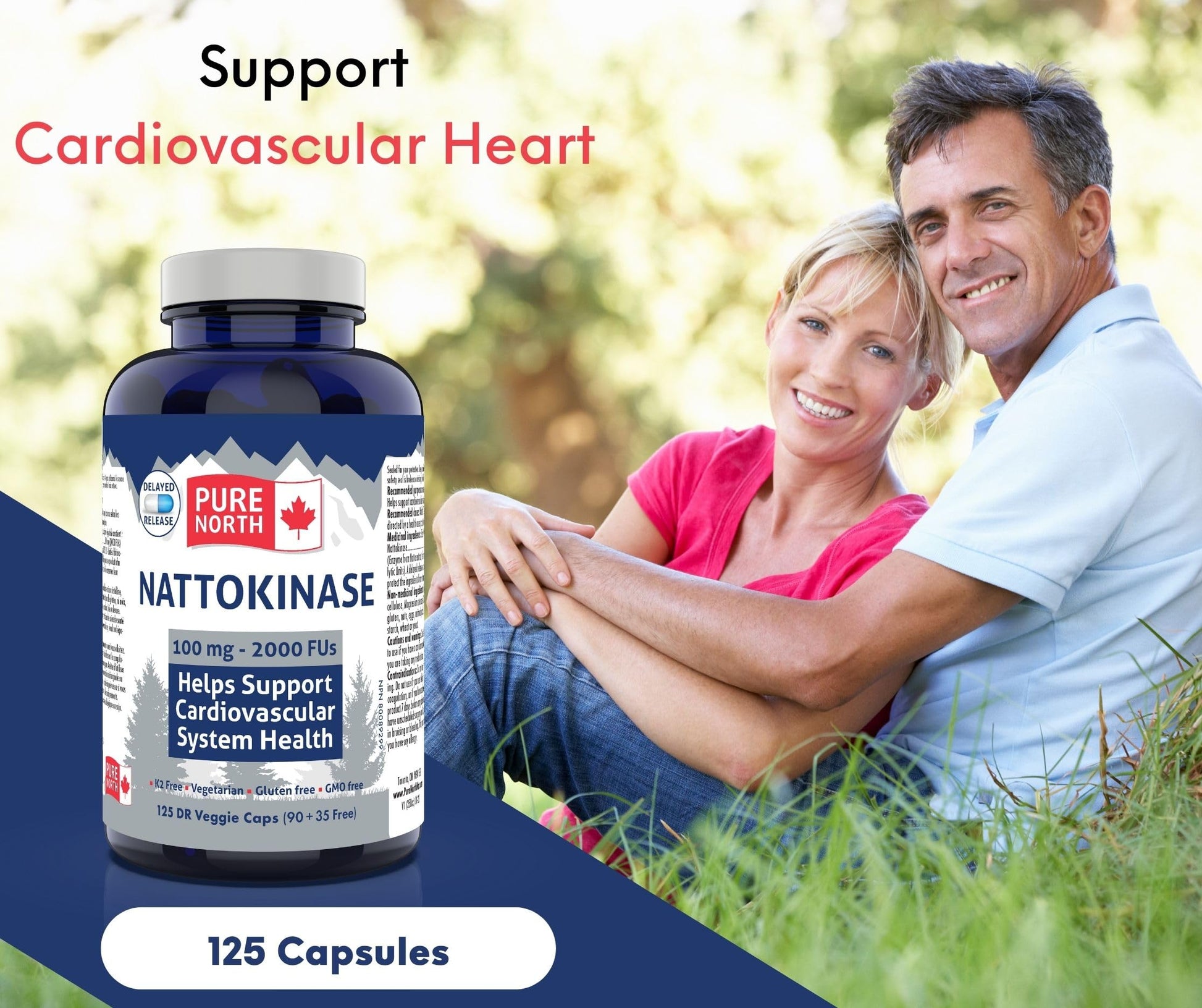 Pure North Naturals - Complément Nattokinase, 100mg, 2000 FU, 125 Capsules, Approvisionnement de 125 jours, Végétarien et Sans Gluten, Haute Puissance pour la Santé Cardiovasculaire, Soutien Enzymatique pour le Cœur et la Circulation